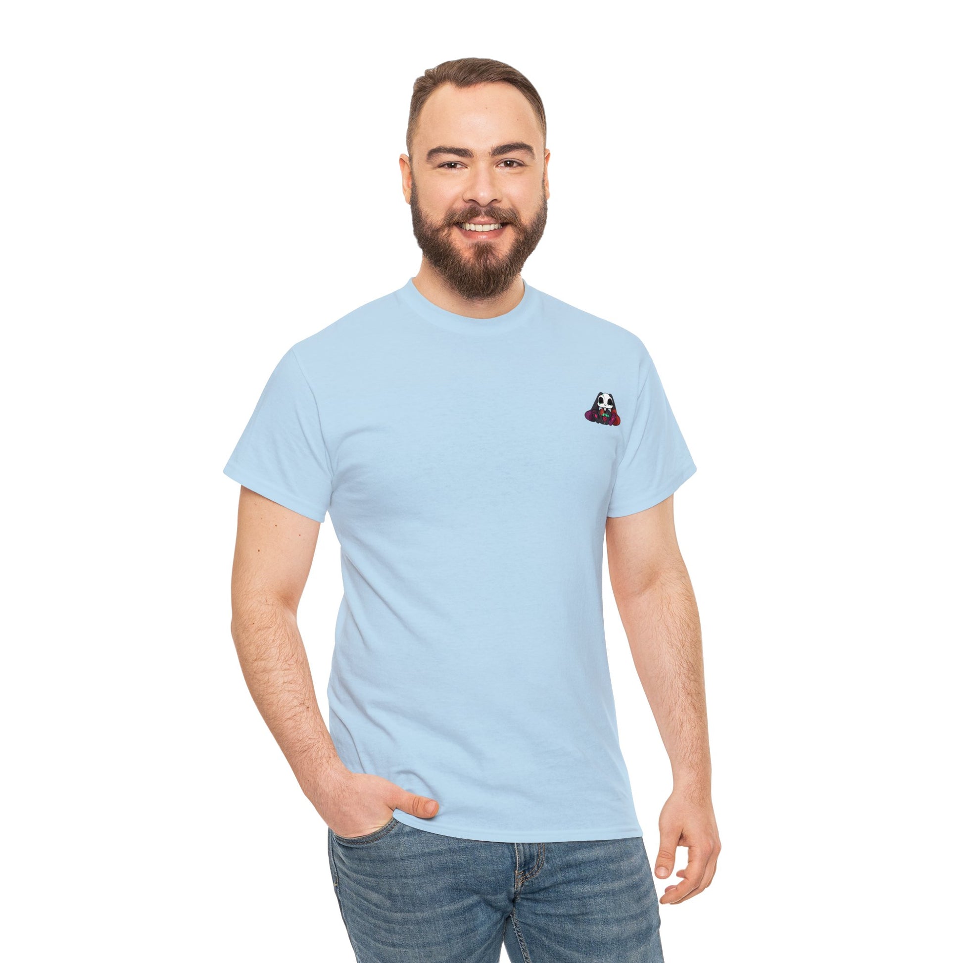 A heavy cotton tee with our logo on the chest. Enjoy this lovely shirt with our logo on the chest and show off how comfy you can be with our shirt.
